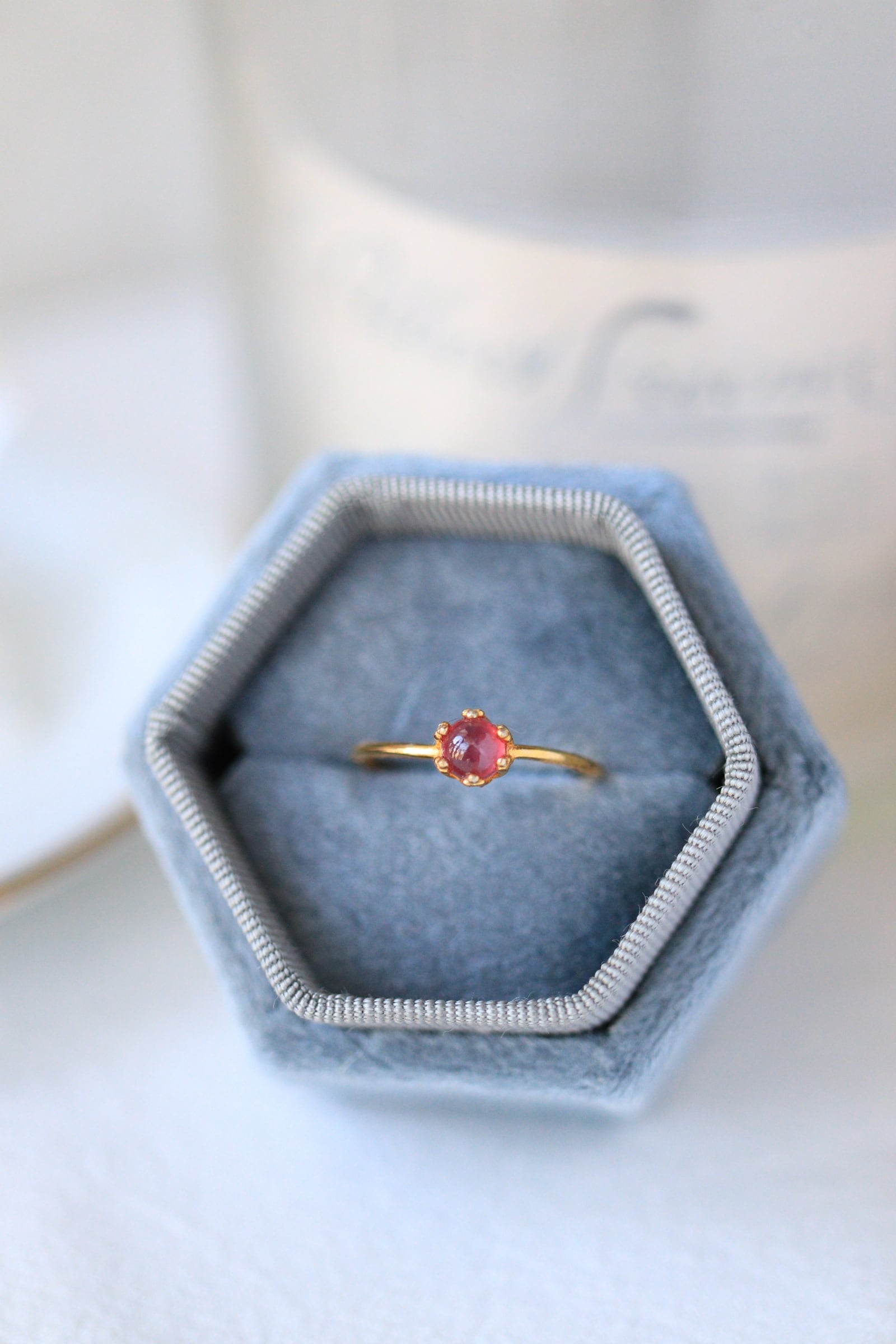 小さくころんとしたルビーがリングになりました。
