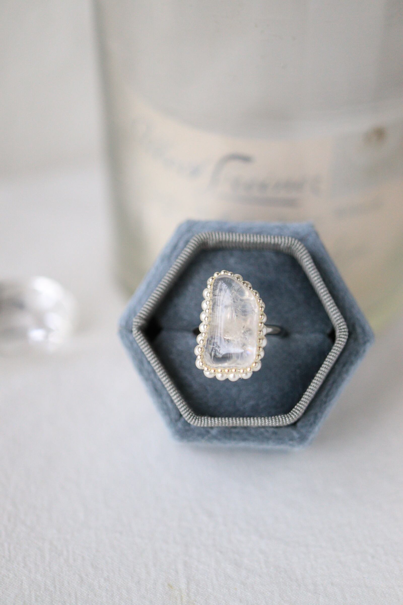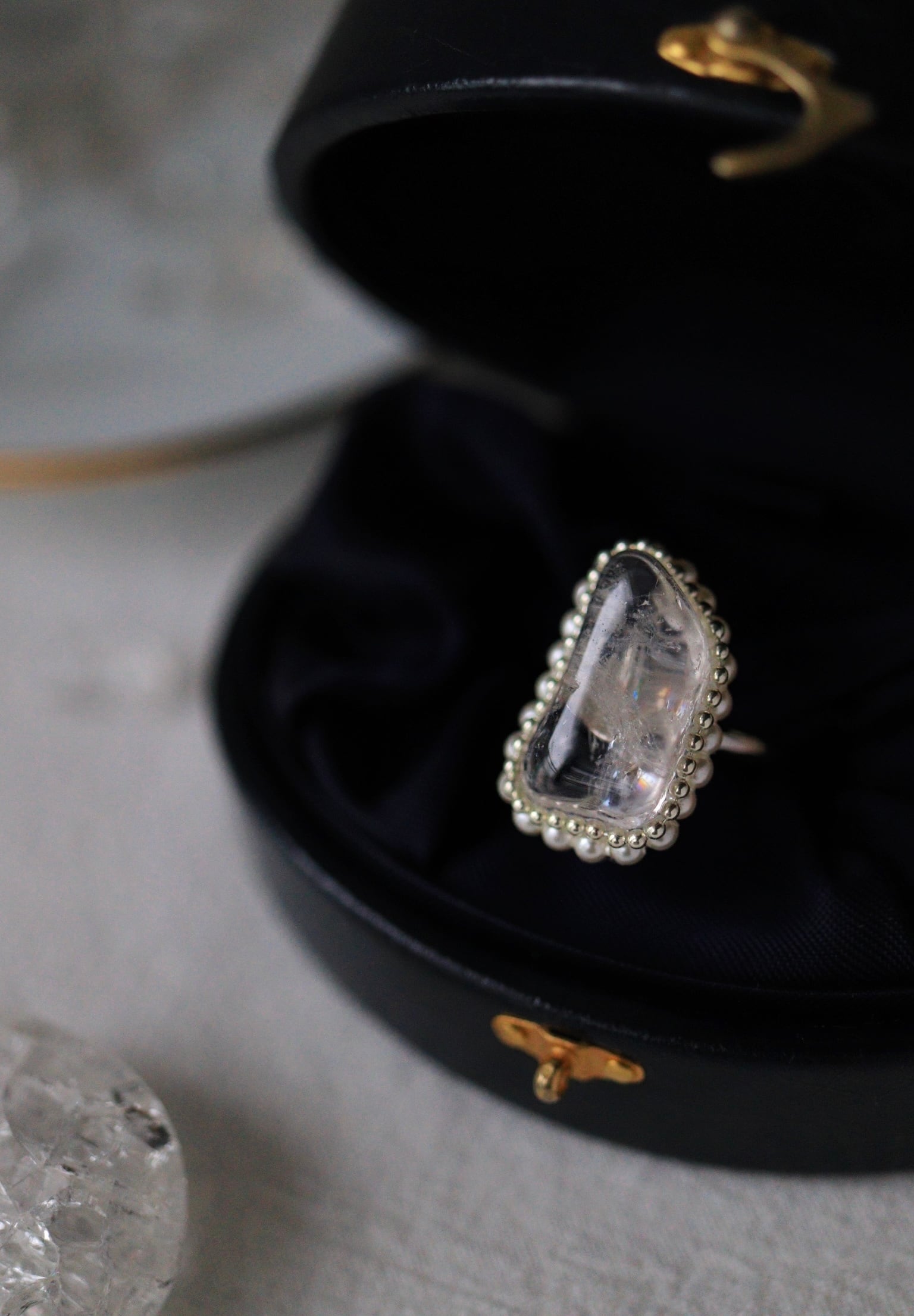 美しい表情の石がパールを纏い素敵なリングに仕上がりました。