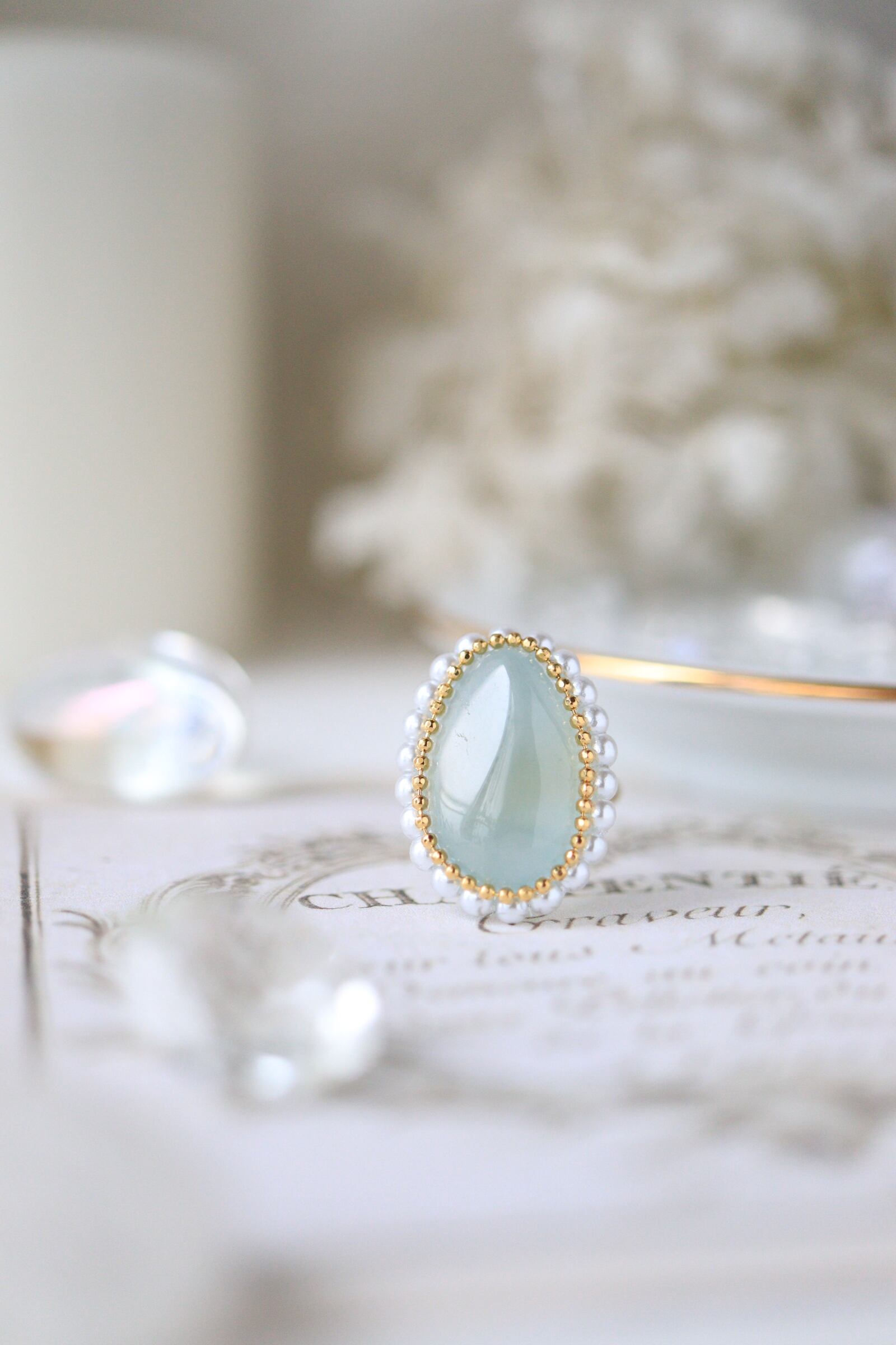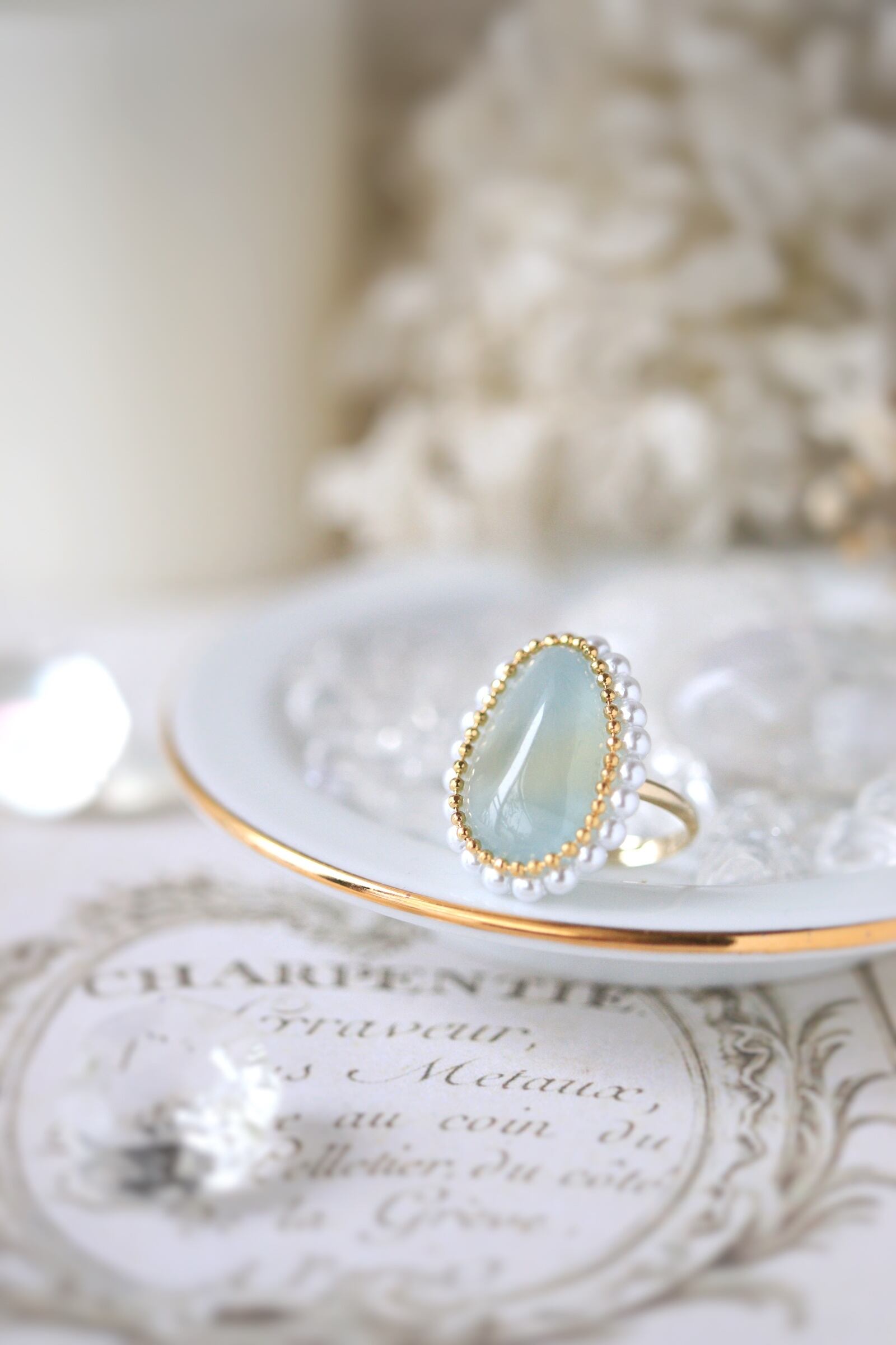 艶もあるレムリアンアクアティンカルサイトがパールを纏いリングになりました。