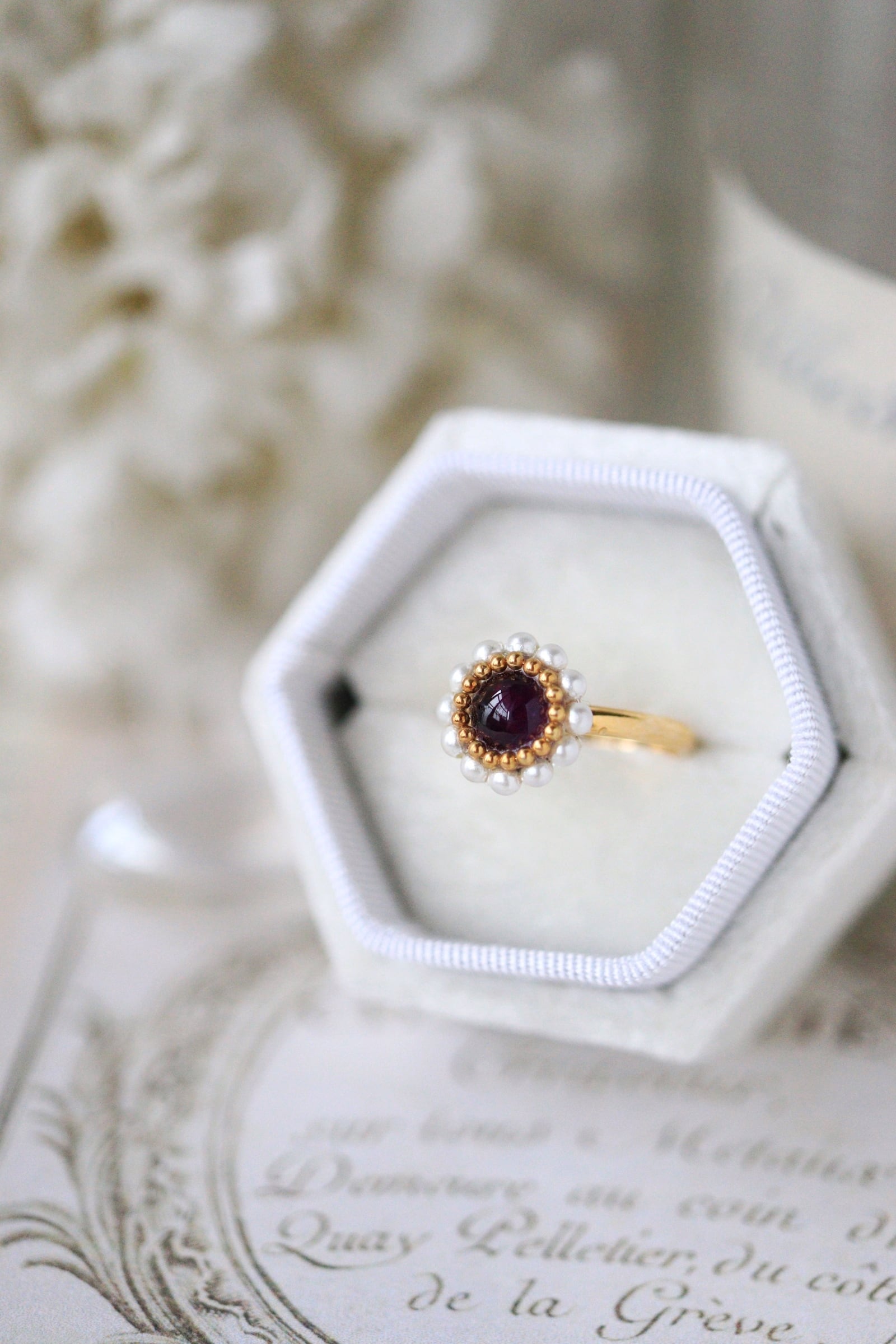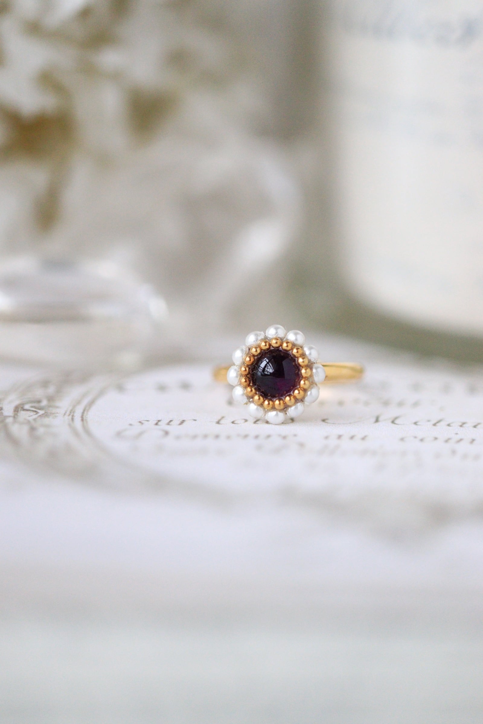 • アメジスト・パールリング:心を落ち着かせ、直感を研ぎ澄ます深い紫。