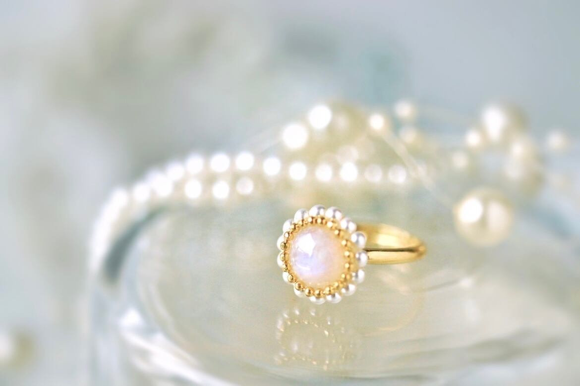 レインボームーンストーン・パールリング