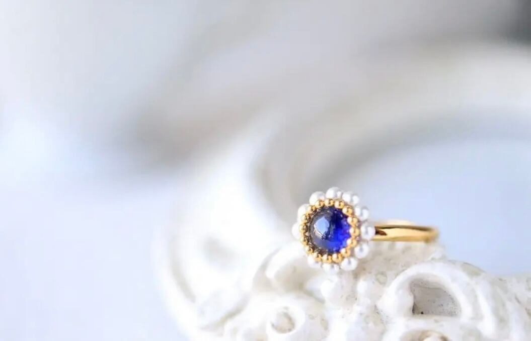 美しく艶感がある石をパールで包みリングに仕上げました。