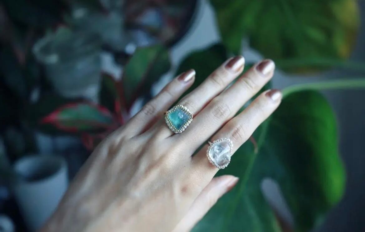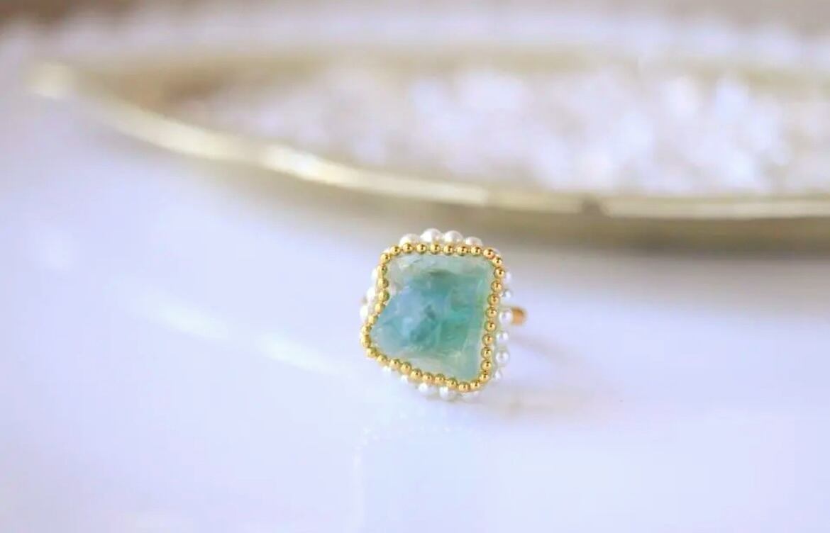 透明感とグリーン色が美しい石をリングに仕上げました。